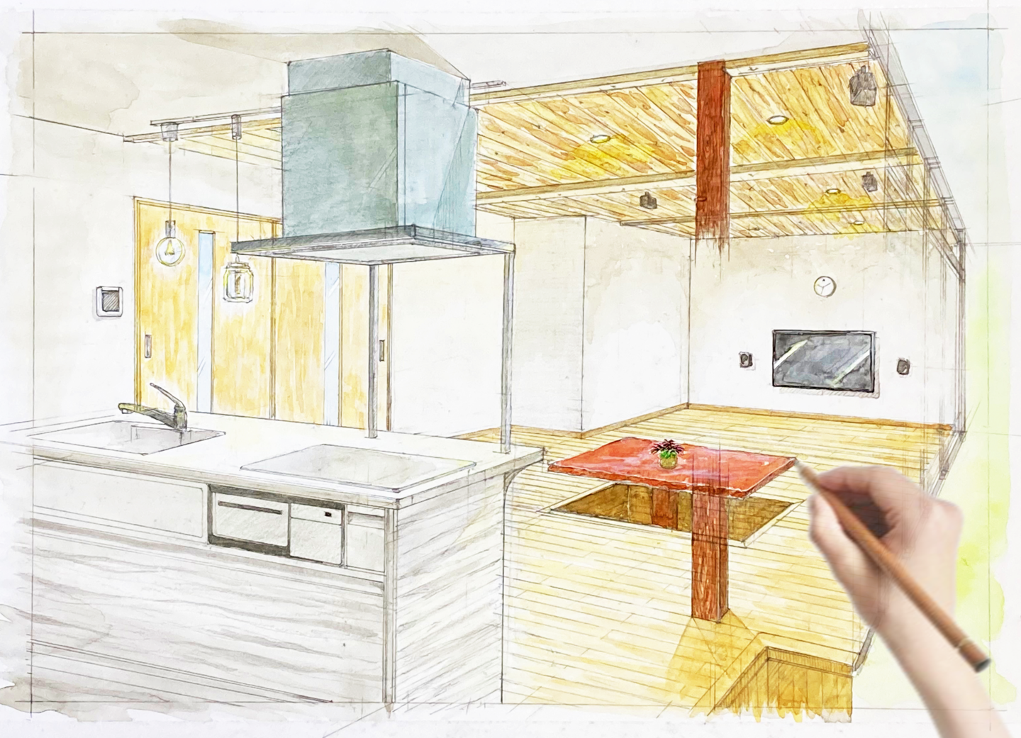リフォームでは、作成することの少ない施工後の完成イメージをお客様のオーダーを基に、分かりやすいスケッチやCGを作成し、綿密な打合せを重ねて業務を推進しております。